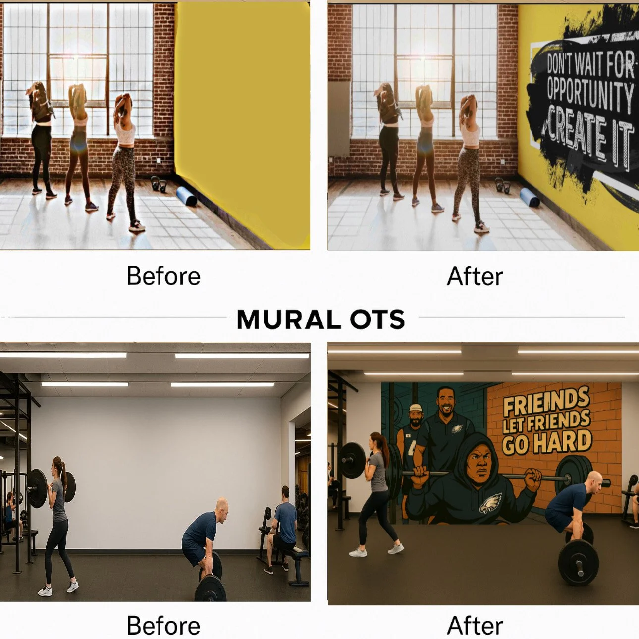 We’re Mural OTS, and we’ve got a machine that can take any wall in your gym—from the cinderblock by the squat racks to the lobby wall by the front desk—and turn it into a story.